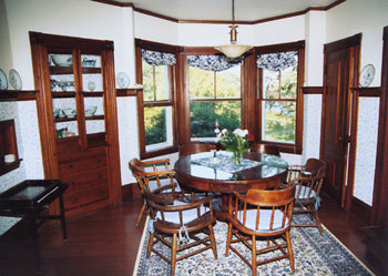 The house surprises with lovable details like the glass- stained window of the staircase, which, at the turn of the century was not easy to find and quite costly in Nova Scotia.